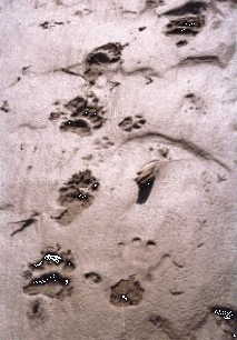 I took this picture of black bear and wolf tracks during our trip up the Wood River. I put one of my hand-prints at the bottom of the picture to give an idea of scale. The photograph was taken on a sandbar next to the river where I had seen a lynx relaxing earlier that morning. The lynx had all four of its legs tucked underneath it and sat watching the river flow by. I got a great view of the lynx through my binoculars but it was too far away to get a good picture with my cheap camera.